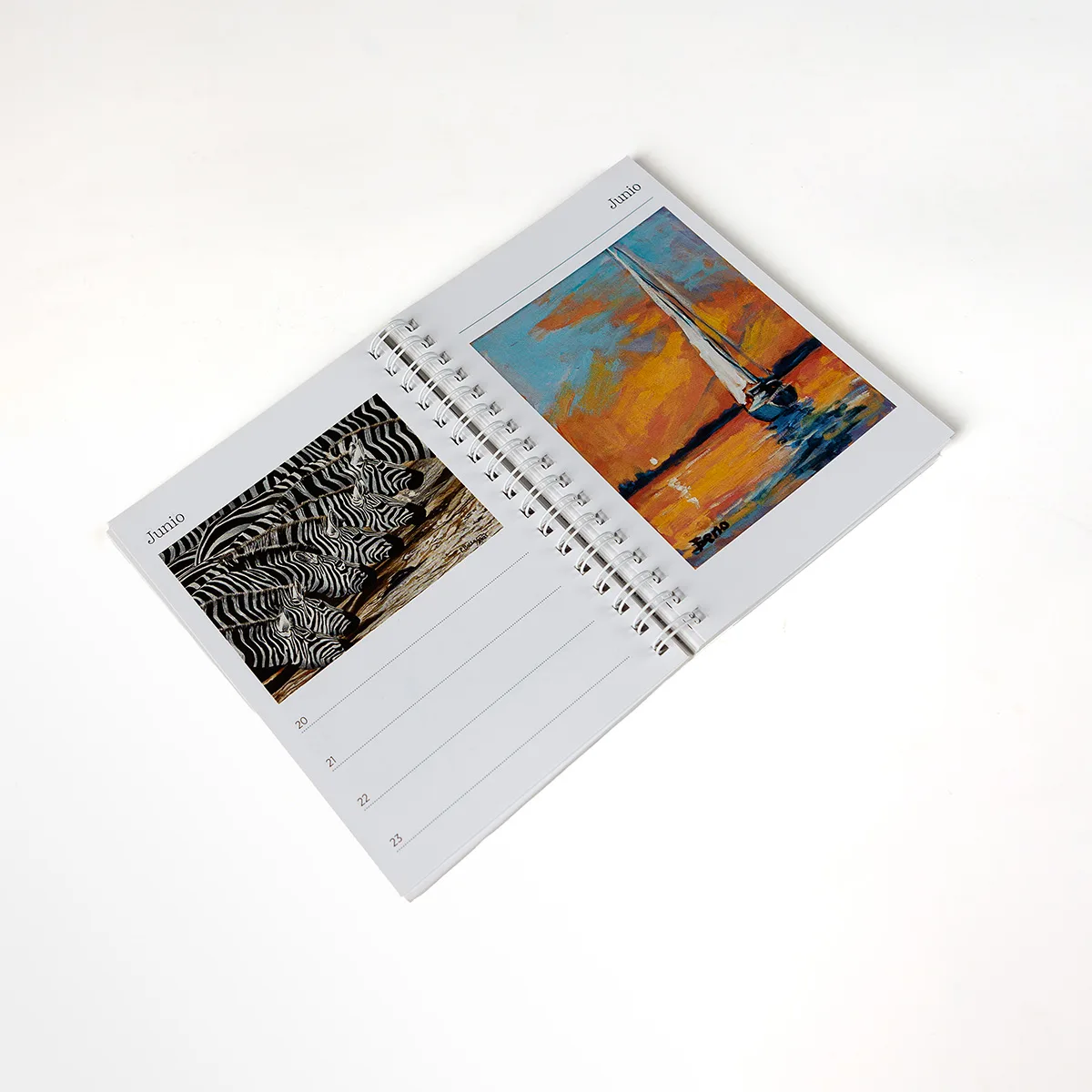 Nueva agenda anual anillada de 60 páginas con más de 70 reproducciones de motivos a todo color pintados con la boca o el pie.