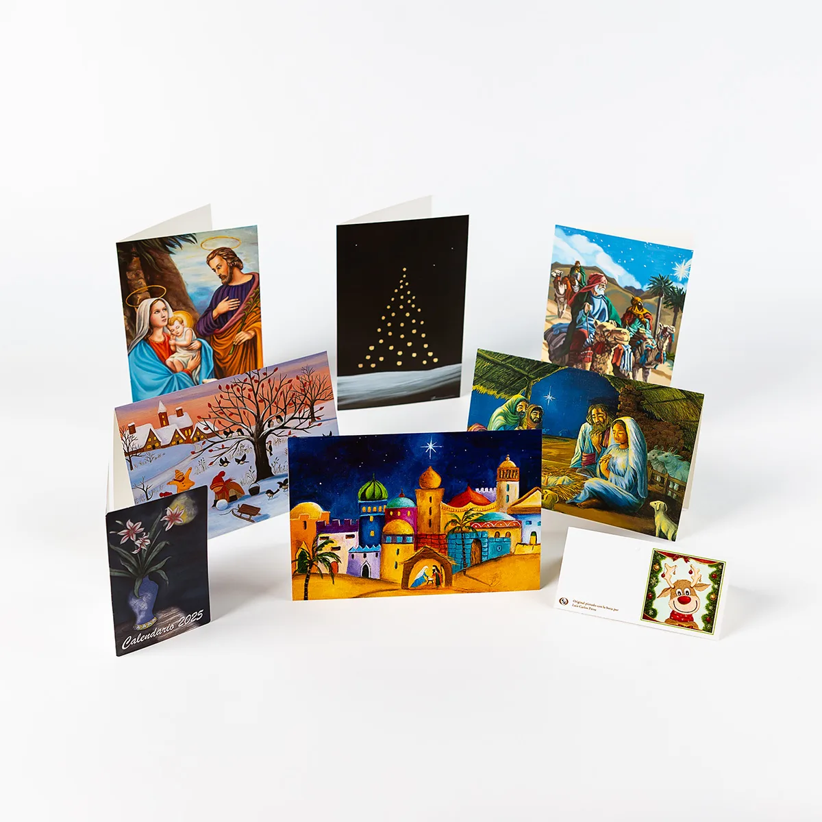 La colección de Navidad consta de 6 tarjetas con sus sobres, un calendario de bolsillo y 3 etiquetas para regalo.