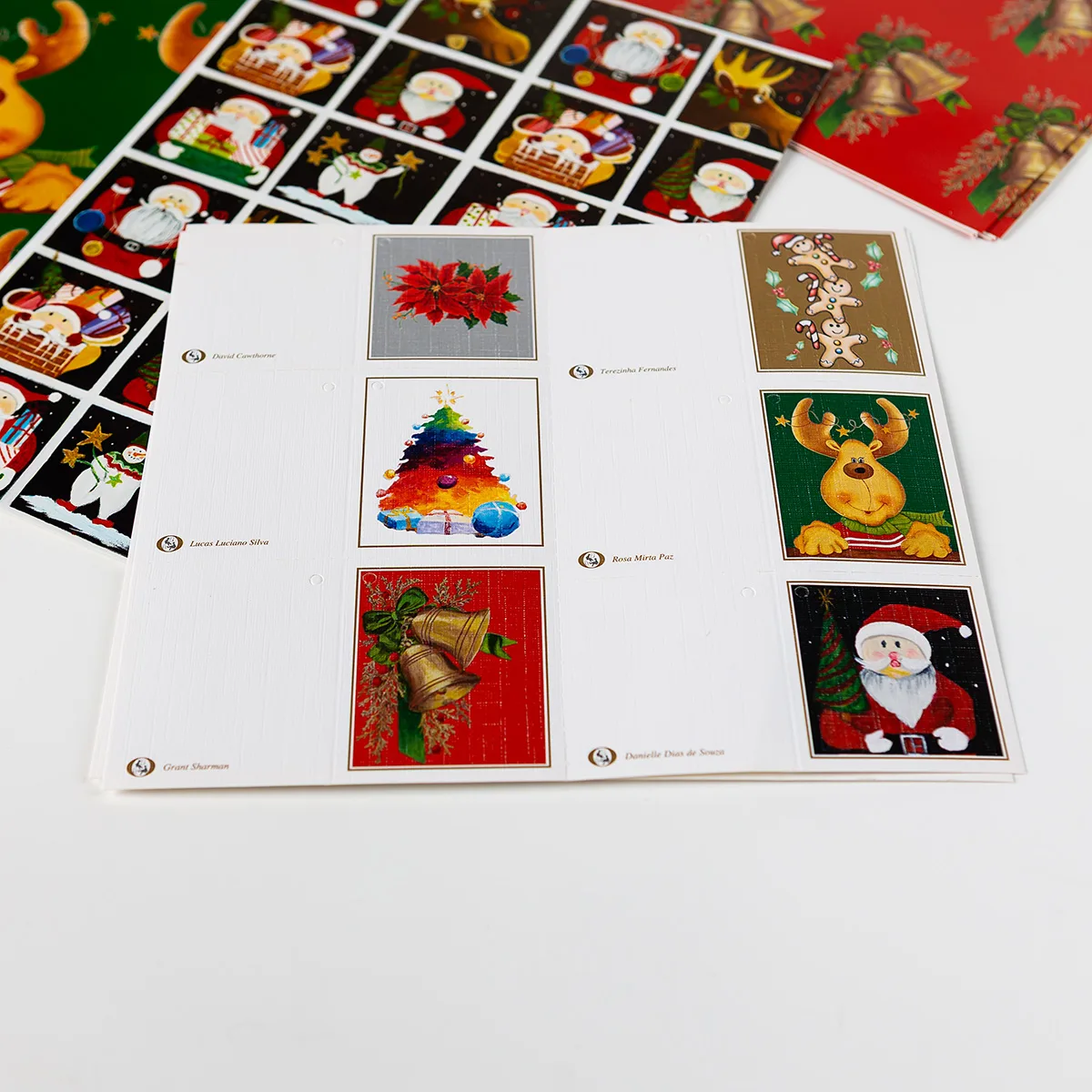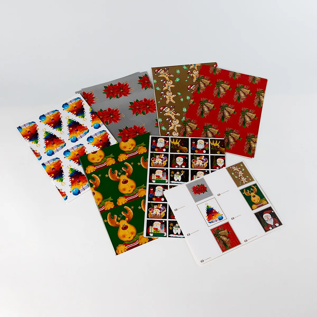 12 pliegos con sus etiquetas con atractivos diseños para Navidad.