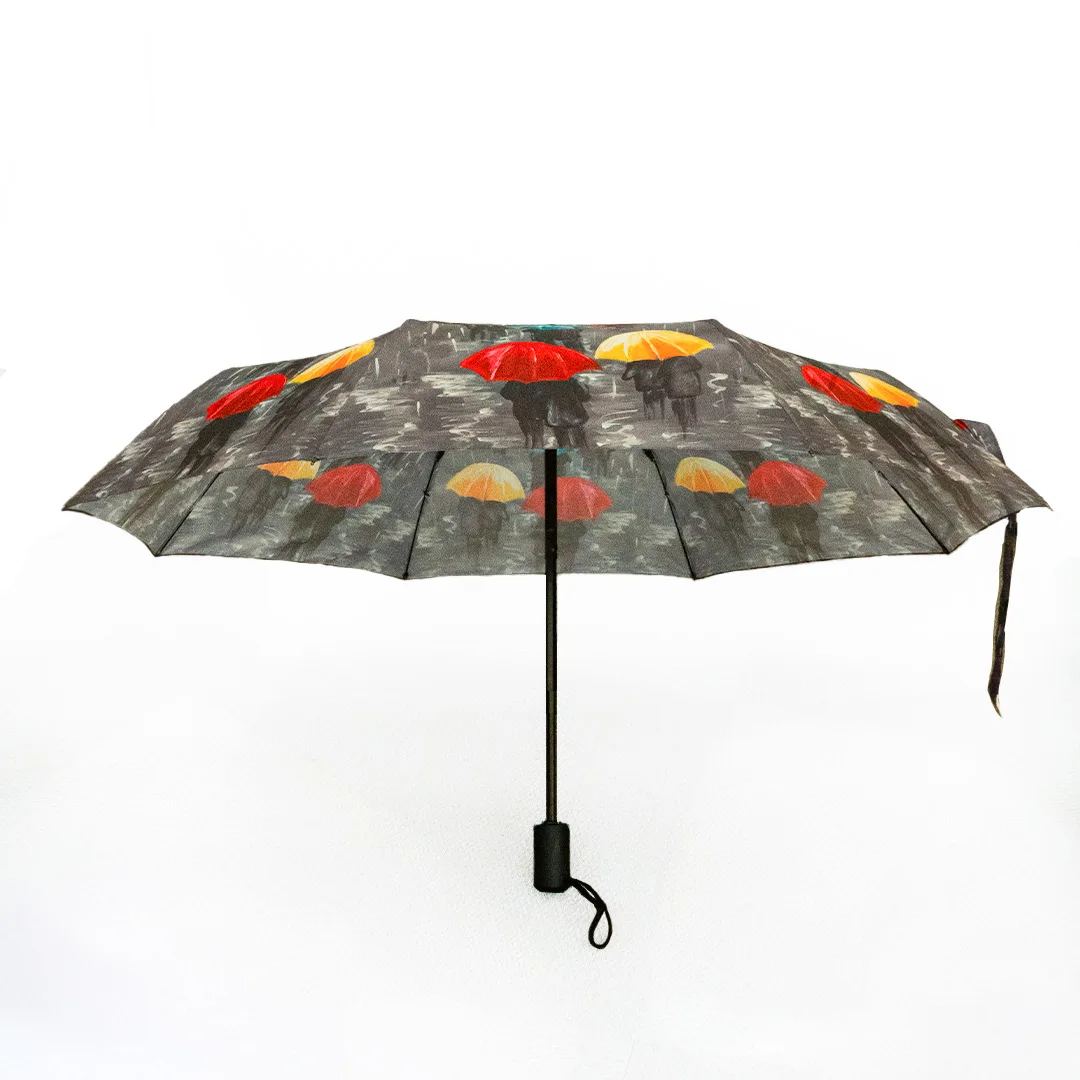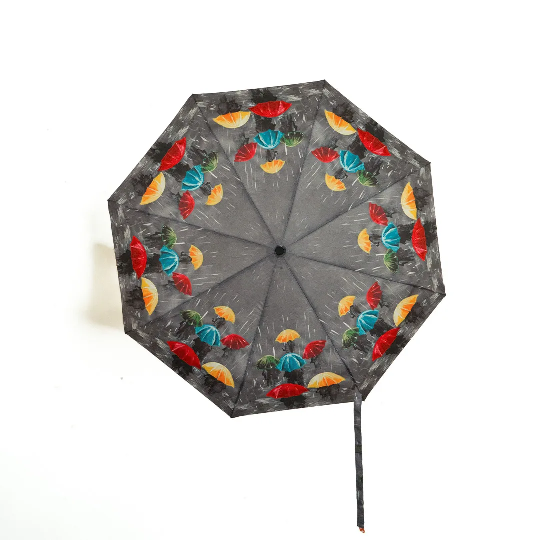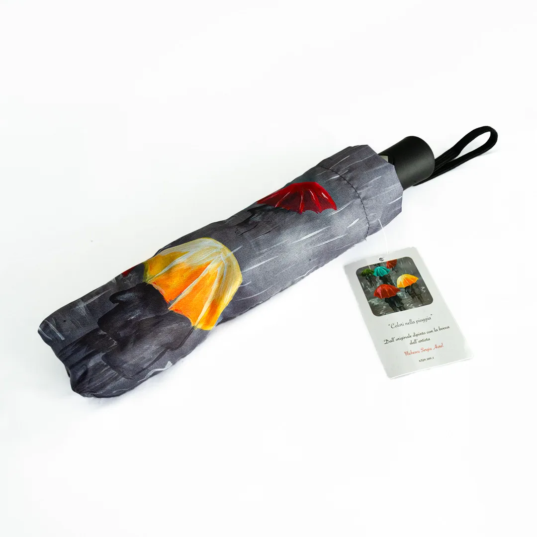 Paraguas plegable anti viento con funda. Modelo Colores en la Lluvia de Sergiu Aurel.