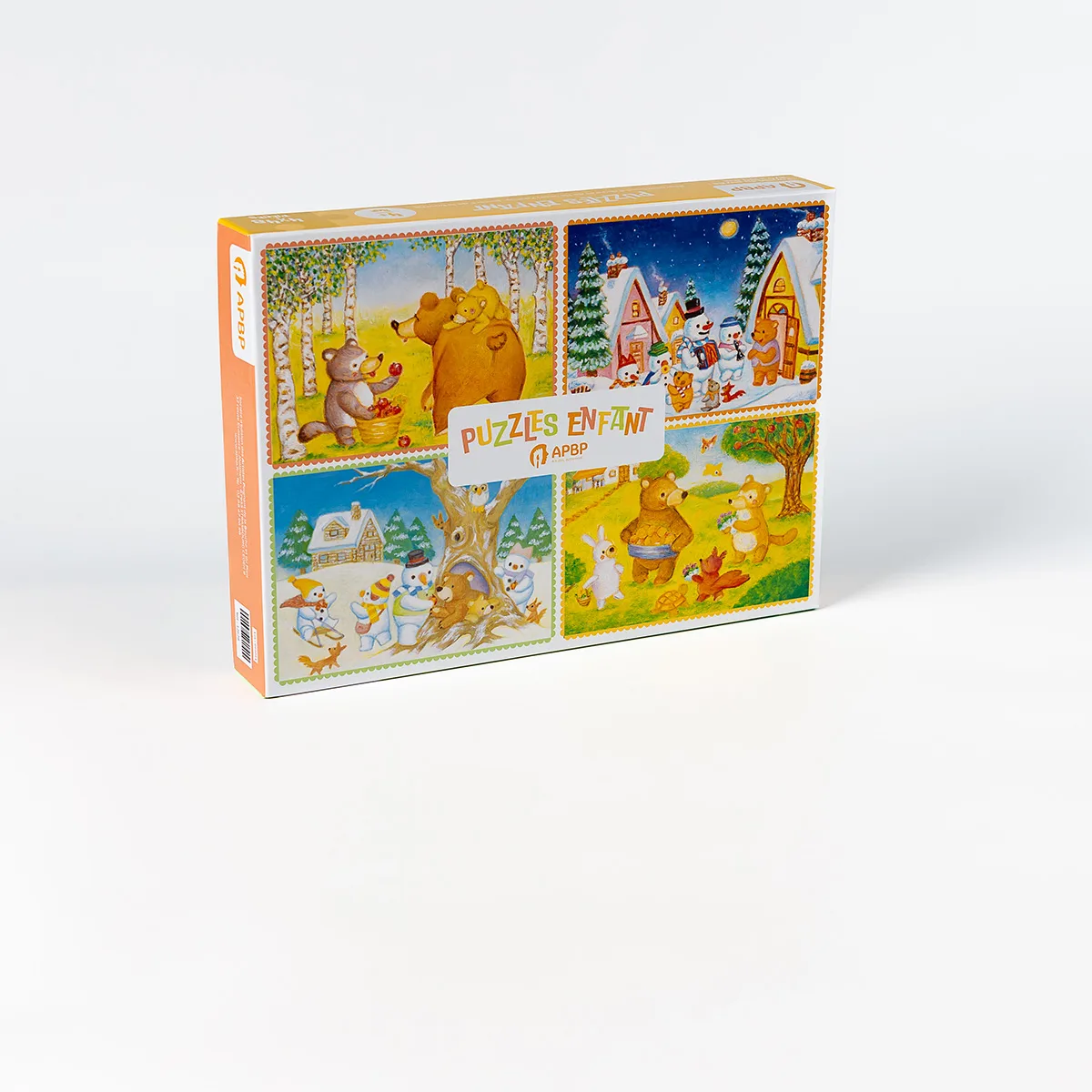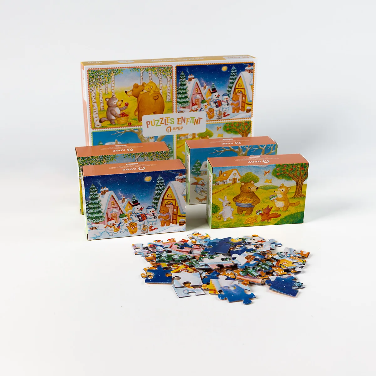 Cuatro puzzles en 1. Cada unidad contiene 48 piezas sólidas.
